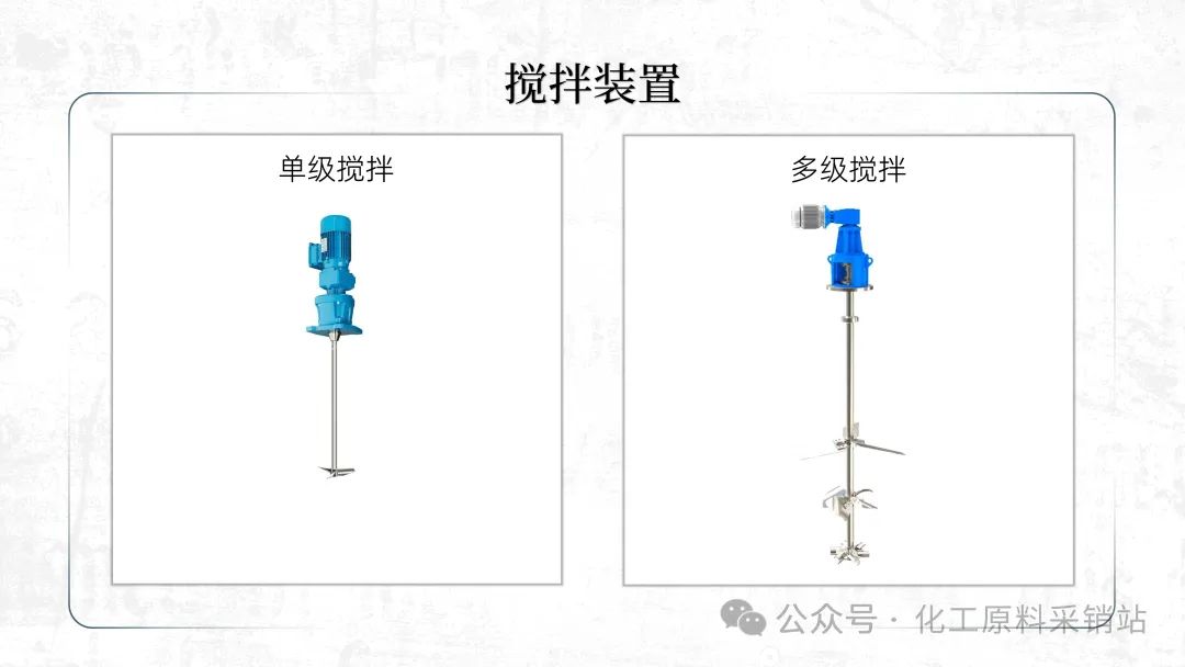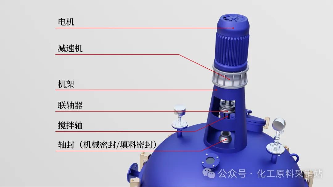 在反应釜中,为加快反应速度、加强混合及强化传质或传热效果等,反应釜一般都装有搅拌装置。它由搅拌器和搅拌轴组成,用联轴器与传动装置连成一体。主要作用是“打散”和“循环”介质两个作用。