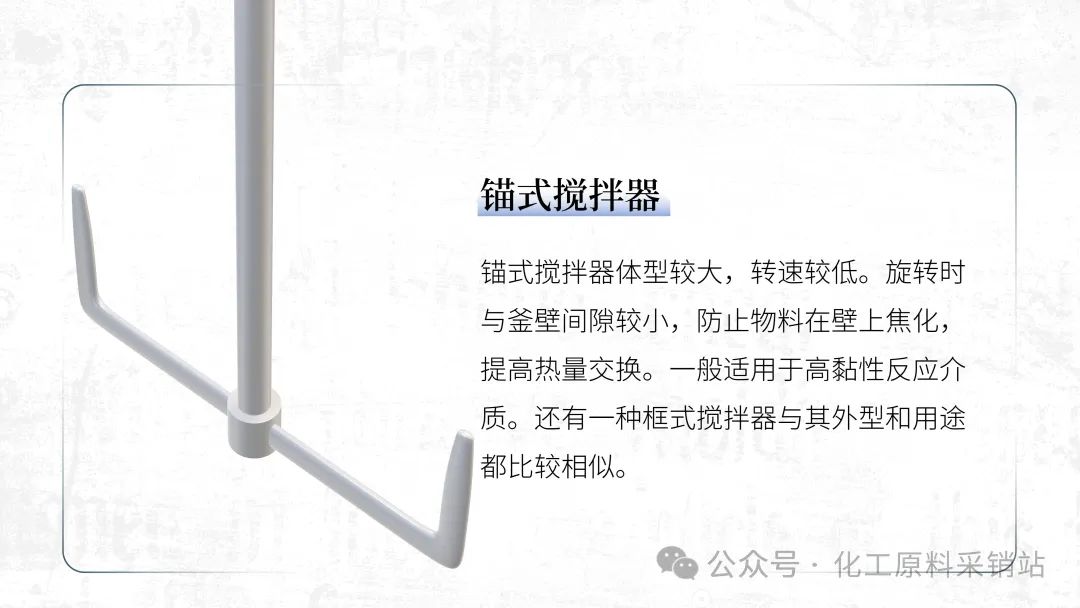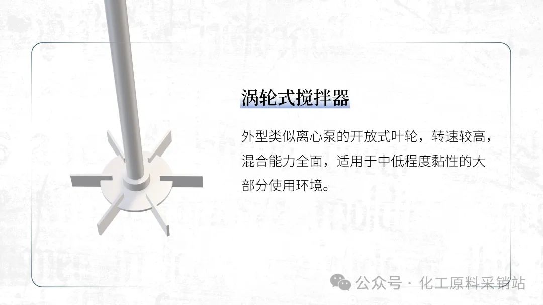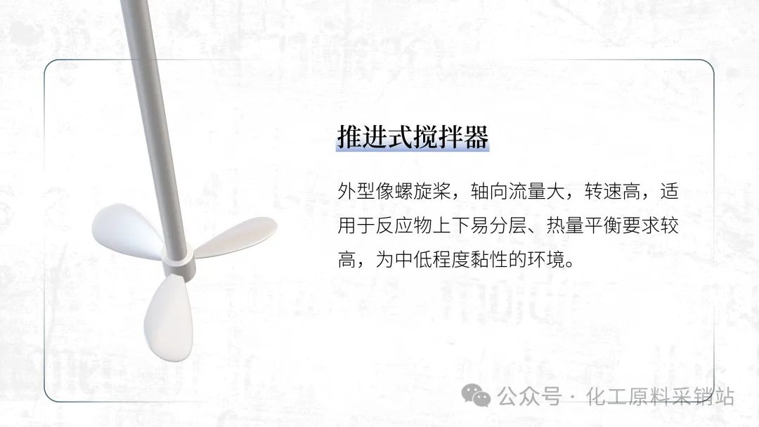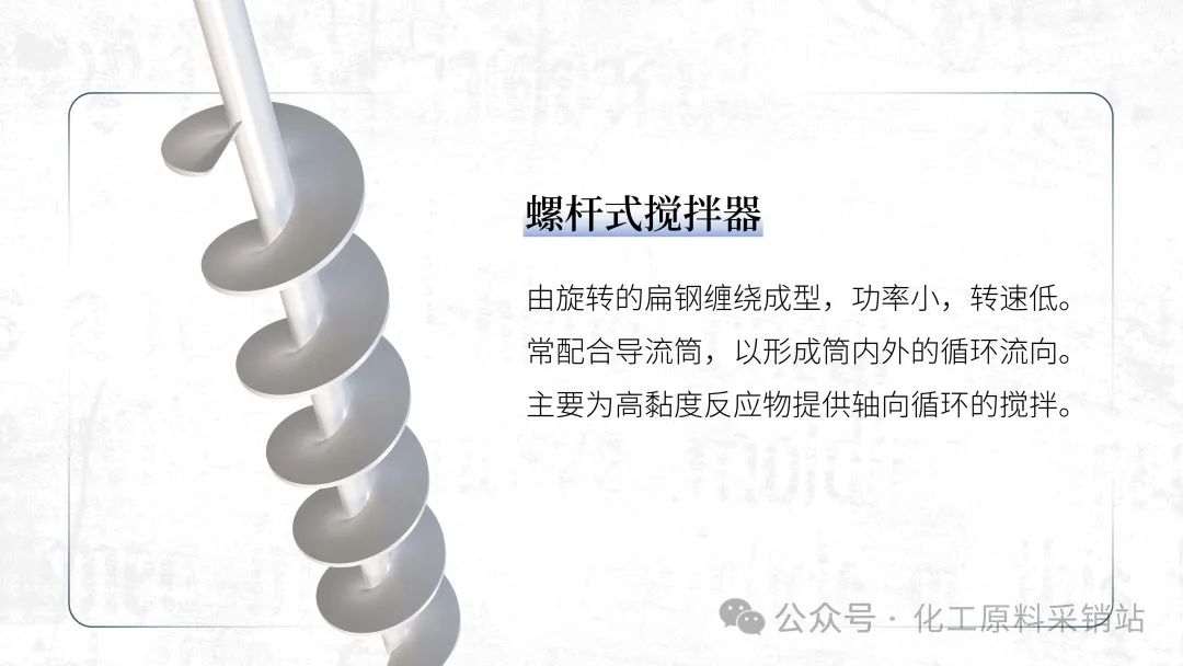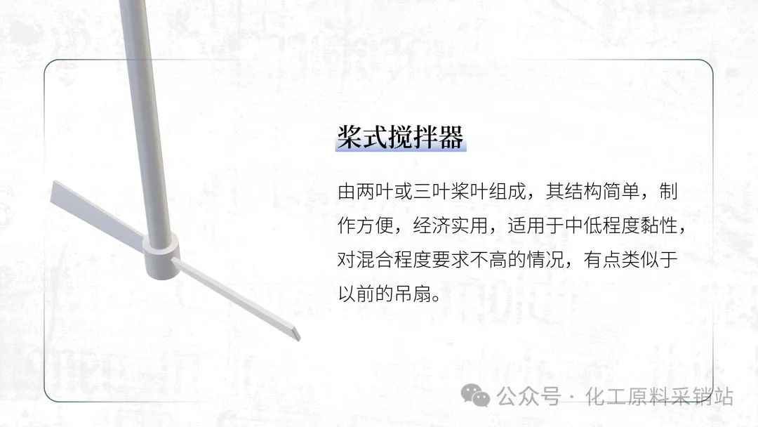 常见的搅拌器类型包括桨式搅拌器、推进式搅拌器、涡轮式搅拌器、锚式搅拌器和螺杆式搅拌器等。