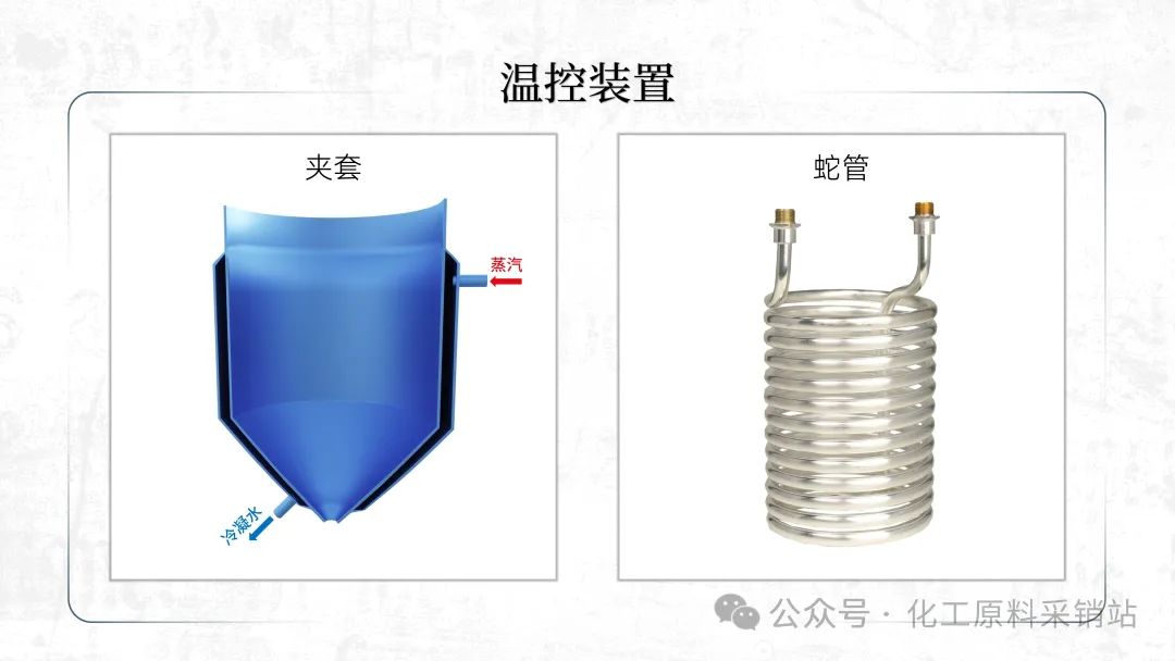 反应釜夹套是最普遍的加热装置,通常是一个中空的桶形结构,夹套内部一般会充入蒸汽或冷却水等介质,通过循环流动来传递热量,或者从反应物料中带走热量,夹套是反应釜的重要组成部分。反应釜加套的形状,根据需要的换热量的大小来设计,以保证反应釜的性能。